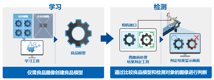 通過(guò)對(duì)良品模型和檢測(cè)對(duì)象圖像進(jìn)行比較,判斷良品和不良品