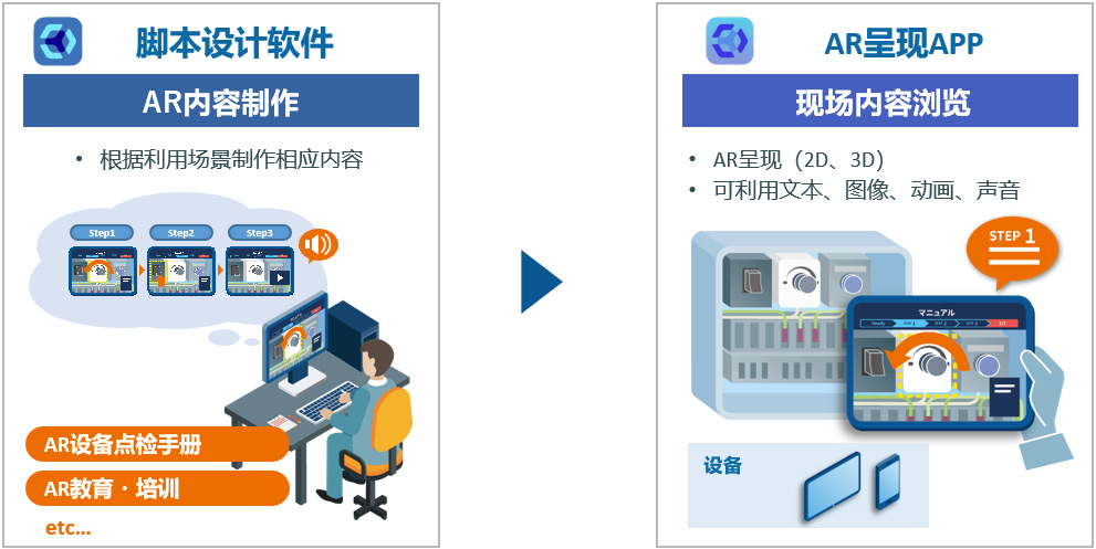 我們的產品由無需編程的腳本設計軟件(Story Designer)和可以在平板設備上播放和觀看內容的應用程序(Story Viewer)組成。使用現(xiàn)場業(yè)務數字化AR軟件,可以防止因錯誤操作設備、維保流程錯漏等導致的工作失誤,建立數字化作業(yè)履歷,為復雜技術的傳承和提高現(xiàn)場工作效率做出貢獻。