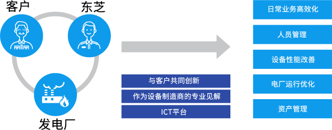 東芝為電廠設(shè)計(jì)的物聯(lián)網(wǎng)解決方案,不僅是單方面的提案,而且將客戶的電廠運(yùn)行管理經(jīng)驗(yàn)與東芝長期積累的豐富專業(yè)技能知識(shí)及數(shù)據(jù)有效結(jié)合,針對客戶面臨的課題,共同創(chuàng)建解決方案。作為貼近客戶的合作伙伴,東芝將在機(jī)組的全生命周期內(nèi)幫助客戶解決問題。