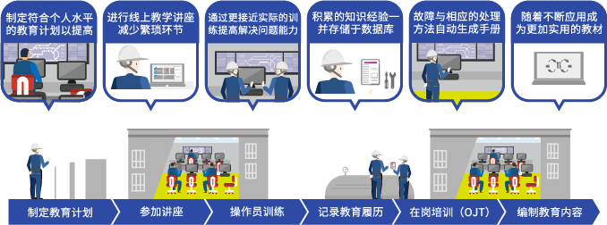 自動(dòng)收集發(fā)生的實(shí)際故障及問題,制定與員工個(gè)人水平相符的教育計(jì)劃,編制教育內(nèi)容。實(shí)際故障及相應(yīng)的處理方法被分類分組記錄下來,可以自動(dòng)生成培訓(xùn)手冊,留存寶貴知識(shí)經(jīng)驗(yàn)。利用實(shí)際案例,配合線上教學(xué)講座(e-learning)、模擬訓(xùn)練、在崗培訓(xùn)(OJT)這三種學(xué)習(xí)方法,增加實(shí)務(wù)經(jīng)驗(yàn),提升業(yè)務(wù)水平。