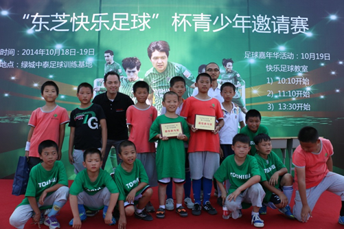 【2014年10月27日】2014年10月18-19日,“東芝快樂足球”杯青少年足球邀請賽在杭州綠城足球俱樂部訓練基地舉行,共有16支球隊的192名小選手參與其中,充分感受足球運動帶來的快樂。同期,在10月19日杭州綠城主場對陣北京國安的比賽當天,“東芝綠城特別日”活動也在黃龍體育場上演,現場球迷與東芝一起為主隊助威,并通過互動抽獎分享快樂足球的精彩。