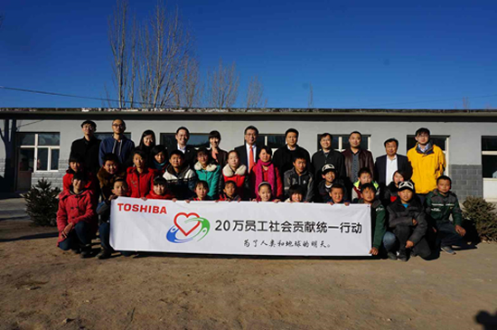 東芝員工代表和山西省天鎮縣東芝希望小學小學生合影