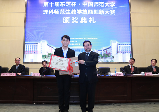 決賽設置有教案設計、即席演講、模擬授課與現場提問四個環節,對選手的知識積累、創新設計以及臨場應變等能力進行了深入的考察。來自華南師范師范大學的王嘉樂選手, 來自貴州師范大學的劉相伶選手,以及來自遼寧師范大學的李靜怡選手以富有創意的教案設計和流暢自然的現場表達分別斬獲數學、物理、化學組的一等獎。東芝教學創新獎花落華南師范大學的陳德成選手,其對于化學教學的創新性思考贏得了現場專家和評委的高度認可。