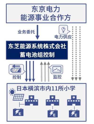 在2016年到2018年的兩年間,東芝能源系統株式會社開展了相關實證實驗,利用物聯網對多個蓄電池進行控制。2019年,東芝能源系統株式會社在實證實驗方面所取得的成績和所付出的努力得到了東芝集團的認可,開始與東京電力能源伙伴株式會社合作。在這期間,東芝實施了VPP運營服務,在日本橫濱市內的11所小學設置了蓄電池;并作為一個“電池集群”進行遠程控制,確保非常時期的電力供應,同時根據電力系統和蓄電池情況,嘗試高效運營。