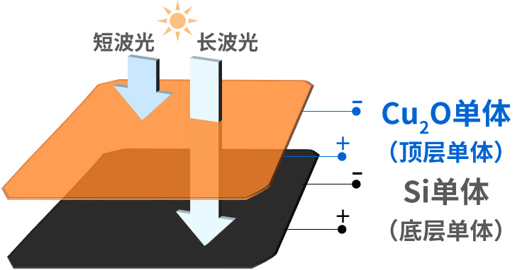 東芝的串聯型太陽能電池將Cu?O材料(氧化亞銅)電池和傳統硅材料電池組相結合,其中Cu?O材料實現了全球最高發電效率8.4%。