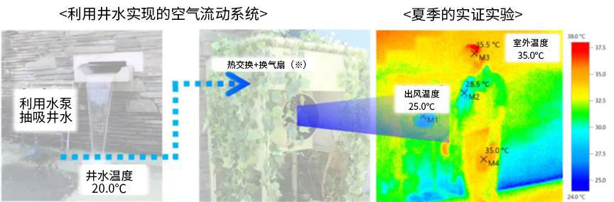 ※空調(diào)通常使用氟利昂之類的制冷劑,但本實(shí)驗(yàn)使用的是清涼井水,通過抽吸井水,并使用換氣扇傳送涼風(fēng)。